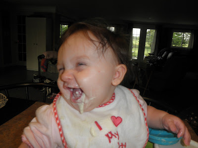She smiles all the time, and even when she's crying (yes, she does cry!), she often cracks a smile anyway. She's a pleasant little girl, enjoying life and light fixtures (which by the way, if your baby likes light fixtures, check out Kelseys..it was a hit!)